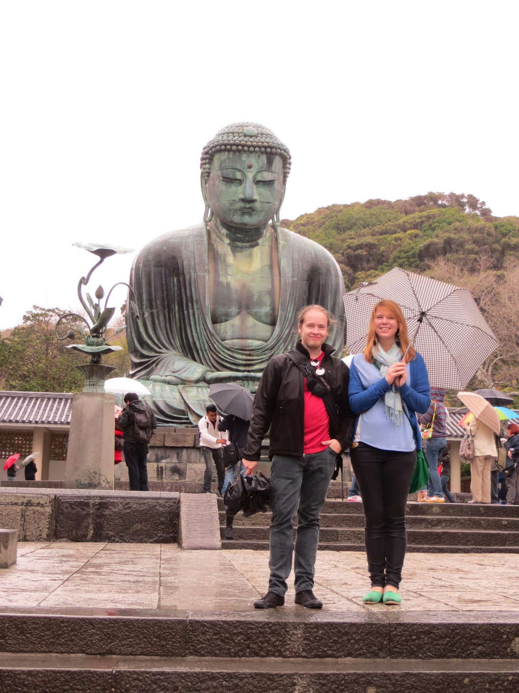 Kotoku-in temple- Home to a 700 something year old bronze Buddha statue. Umbrellas out, we arrived at the temple. We poked around the architecture, but the Great Buddha was our obvious focus. The statue was quite impressive in scale and construction. For a small fee we were allowed inside, where you could see how the separate pieces were molded and joined together. Very cool indeed! After some photo opportunities and a little poking around, we headed back towards the train.