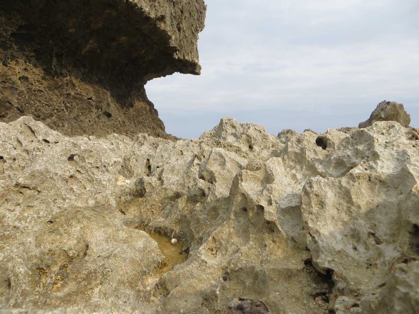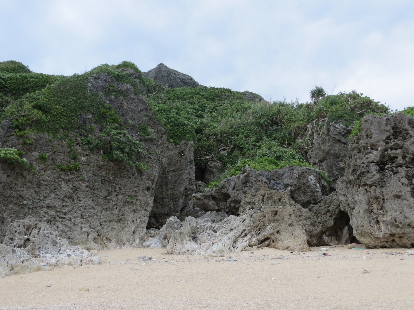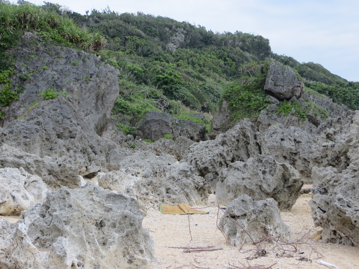 After the museum, we walked the grounds for a bit. There were many, many memorials and shrines in the park. We followed one path which led down to caves that were used as military camps, and eventually it took us down to a secluded rocky beach. There were huge coral-rock formations to both sides, and the ground was littered with miscellaneous trash that had likely washed up on shore. We explored the tidal pools for a bit, snapped some pictures, and headed back up through the jungle path. It was starting to get late, and we still had a long drive to get back to Kadena.