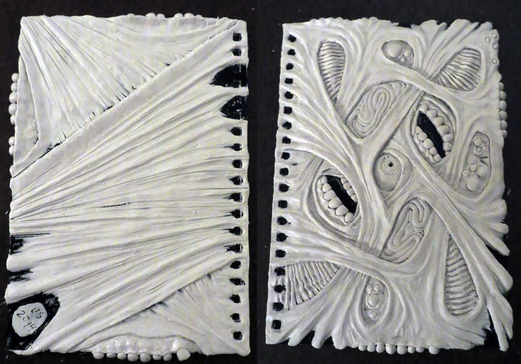 Here’s my new sketchbook cover for this year! I tried out some mold-making and casting, for a change. I like the way it turned out!